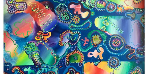 I work with paint, sculpture, and installation. My art explores sentience and organic growth in the context of world-building. I’m fascinated by the mathematical rules that govern the emergence of physical structures and information-based systems. For example, the same branching patterns are found in the distribution of rivers, networks of neurons, a strike of lightning, and the growth of a tree. These patterns matter to me because of how they re-occur across multiple levels of scale, appearing at both the microscopic and macroscopic points in space.